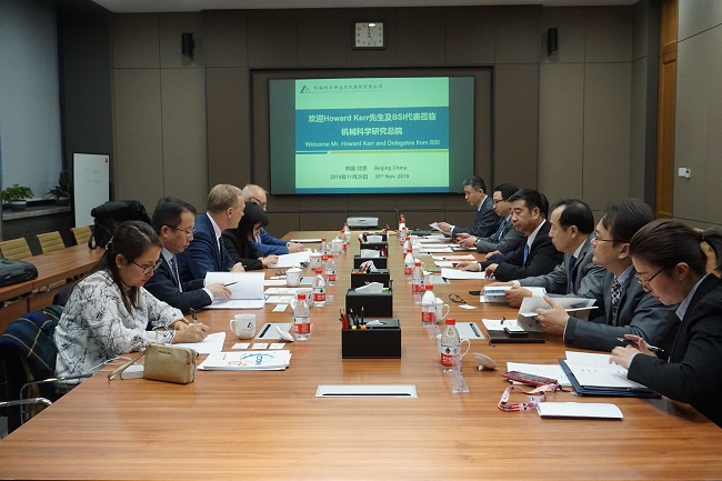 李建友副總經(jīng)理對(duì)霍華德•科爾先生一行的到來(lái)表示熱烈歡迎,并重點(diǎn)圍繞集團(tuán)在基礎(chǔ)共性技術(shù)研究、標(biāo)準(zhǔn)化、檢驗(yàn)檢測(cè)、認(rèn)證認(rèn)可、行業(yè)服務(wù)等方面業(yè)務(wù),以及在支撐中國(guó)裝備制造業(yè)高質(zhì)量發(fā)展中發(fā)揮的重要作用進(jìn)行了系統(tǒng)介紹。霍華德•科爾對(duì)機(jī)械總院集團(tuán)的熱情接待表示感謝。他表示,自今年9月李建友副總經(jīng)理率團(tuán)訪問(wèn)BSI以來(lái),機(jī)械總院集團(tuán)與BSI的合作被提到新的高度,希望雙方重點(diǎn)圍繞設(shè)施管理、增材制造等方面形成全方位的務(wù)實(shí)合作,實(shí)現(xiàn)在標(biāo)準(zhǔn)、檢測(cè)、認(rèn)證等方面的共贏發(fā)展。雙方還就2020年共同舉辦中英標(biāo)準(zhǔn)化高峰論壇等事宜進(jìn)行了深入探討。